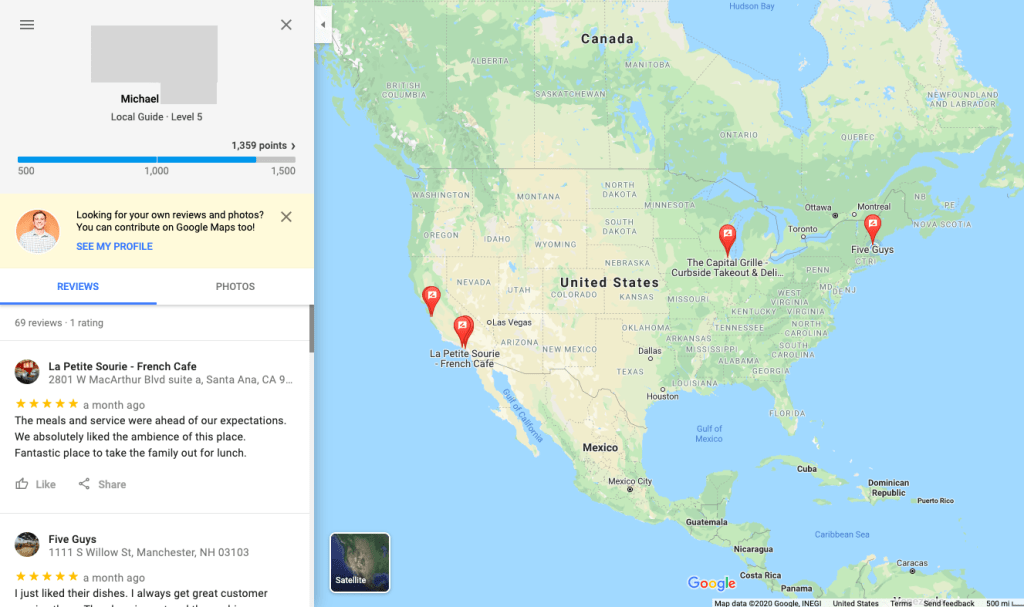 In this view, you can see the businesses that the person has reviewed as well as any photos that the reviewer has uploaded. You can also assess their “contribution points” which are added as the person submits more reviews. The higher the number of points, the more likely that the review is real.